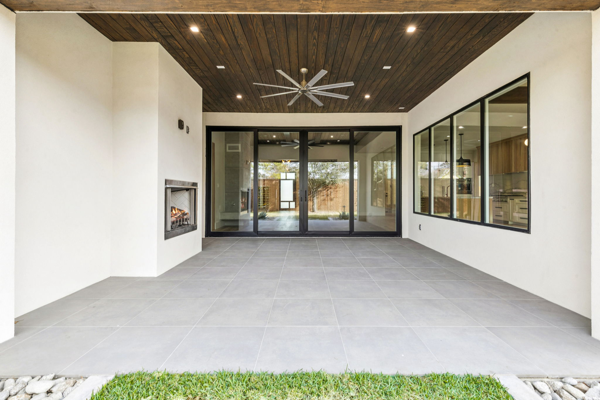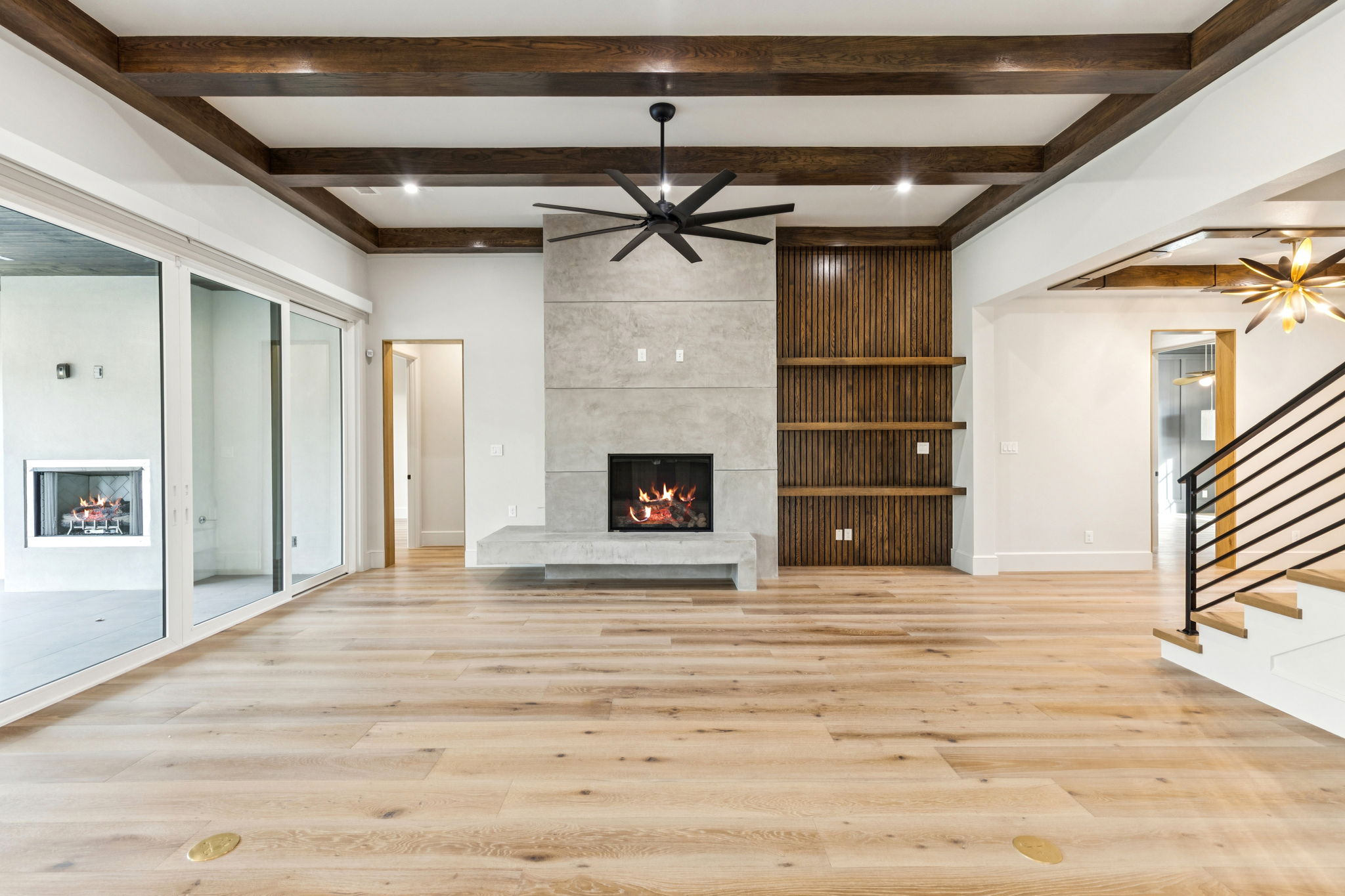 Behind the walls, the home is built to perform, featuring foam encapsulation, tankless water heaters with recirculating systems, energy-efficient LED lighting, and motorized patio shades. A 60-inch linear Montigo fireplace anchors the interior living space, while a wood-burning outdoor fireplace extends comfort and ambiance to the backyard.